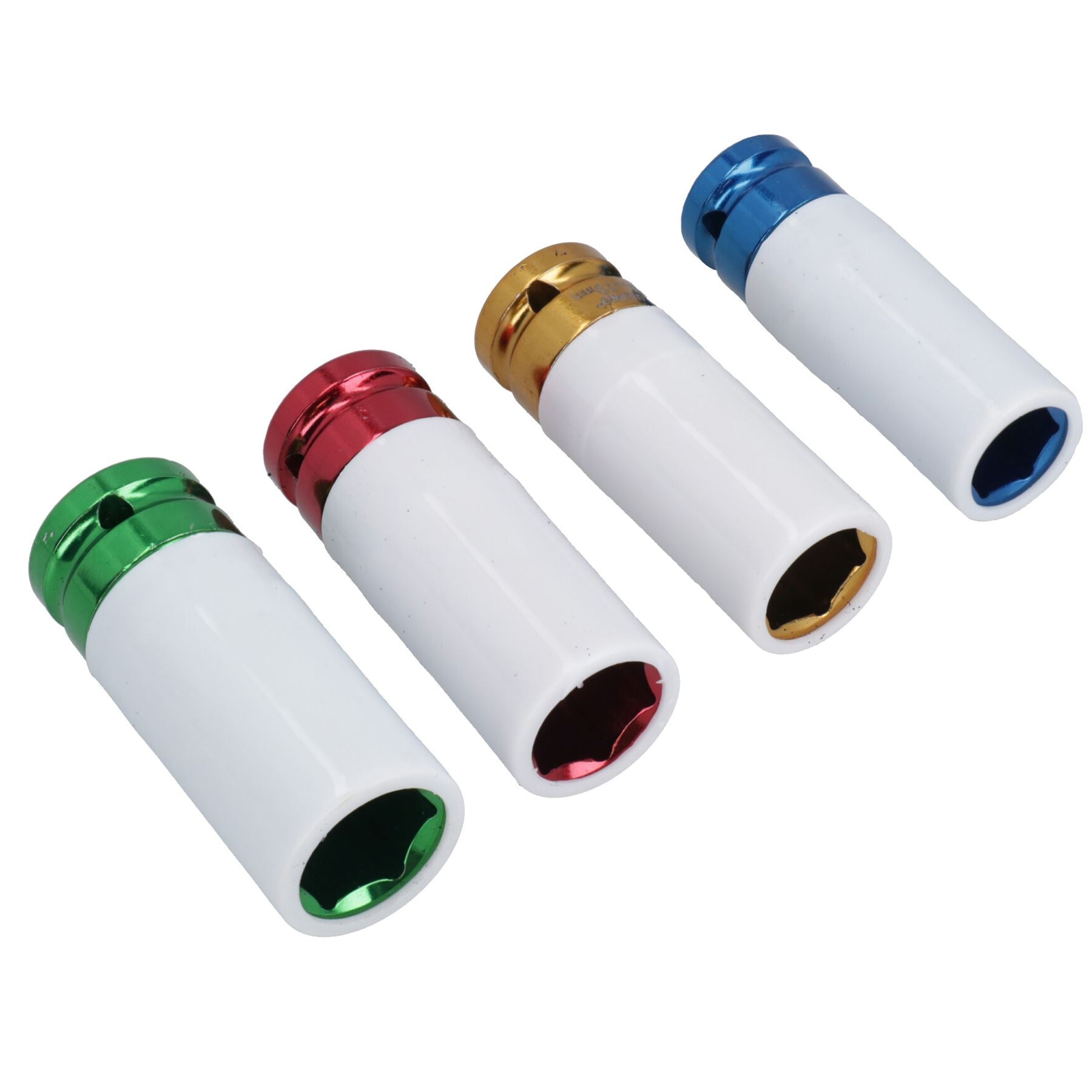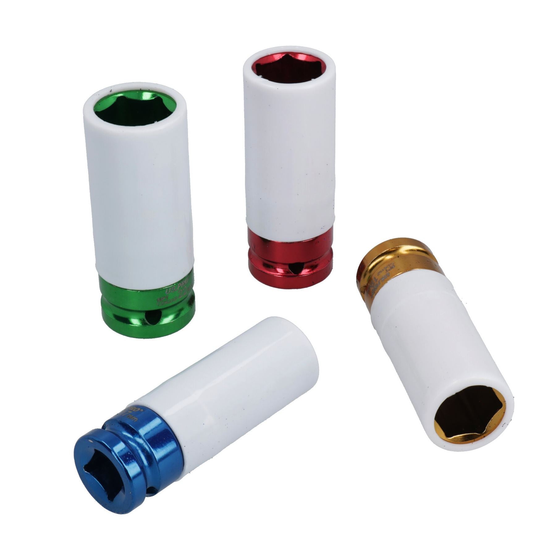 1/2" Drive Alloy Wheel Nut Impact Sockets 17mm 19mm 21mm 22mm 4pc Set
