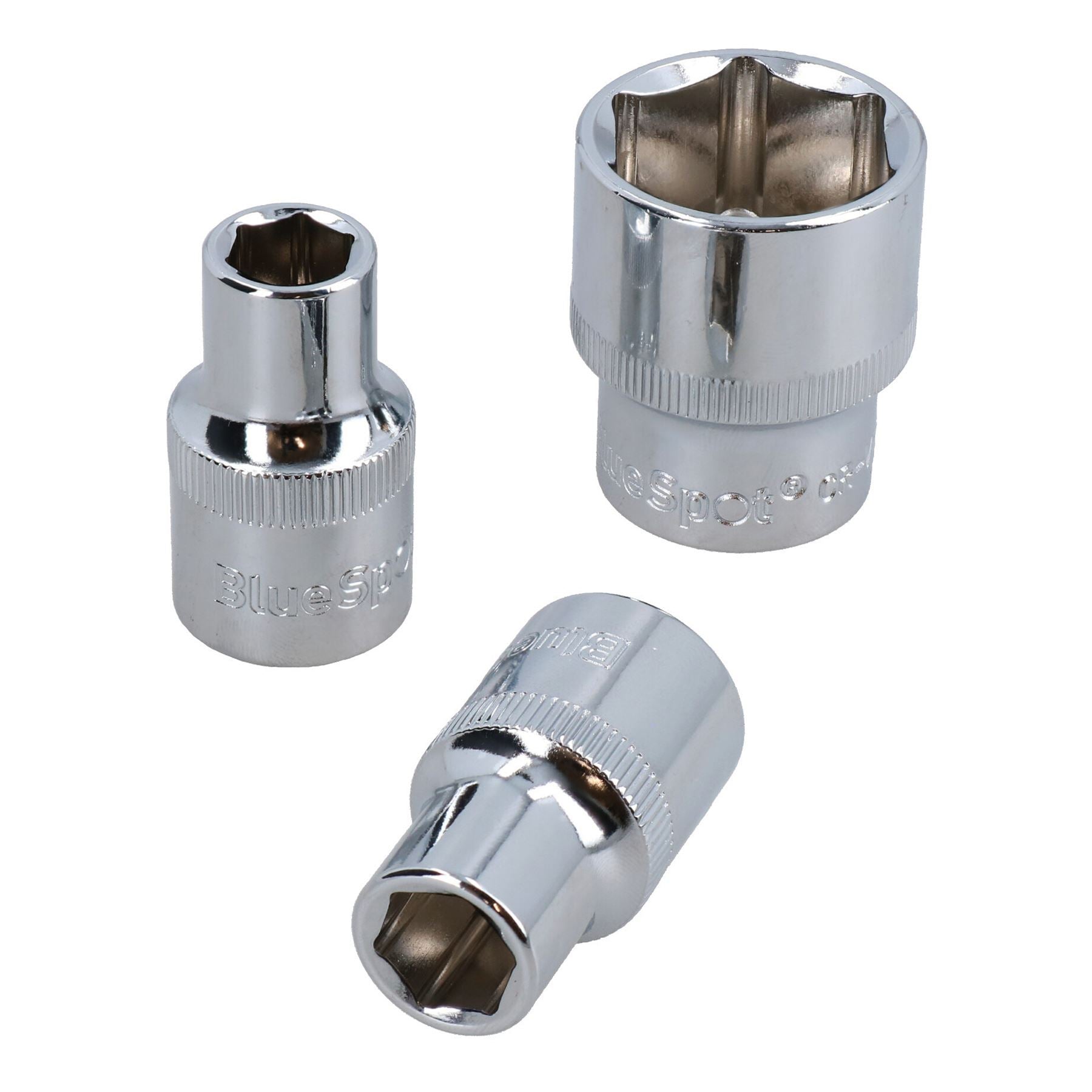 10pc 1/2" Drive Shallow Metric Socket Set 6-Sided Hex Sockets 10 - 24mm on Rail
