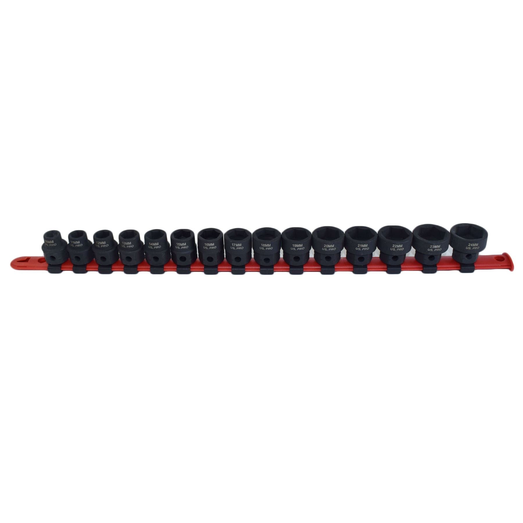 Metric Stubby 1/2" Drive Shallow Sockets With Hex Shank 10mm - 24mm 15pc Set