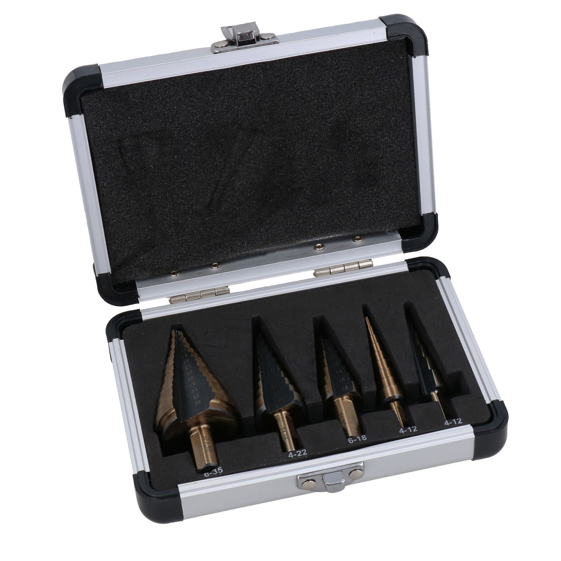 4mm - 35mm HSS - G Step Drill Cone Conical Cutter Drill Bits 5pc Set In Case
