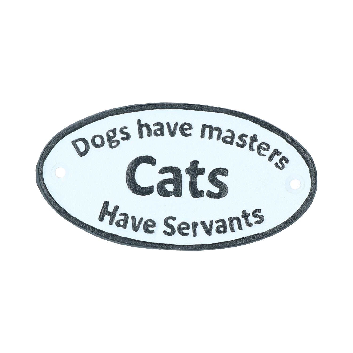 Dog Have Masters Cats Have Servants Cast Iron Sign Plaque Wall Gate House