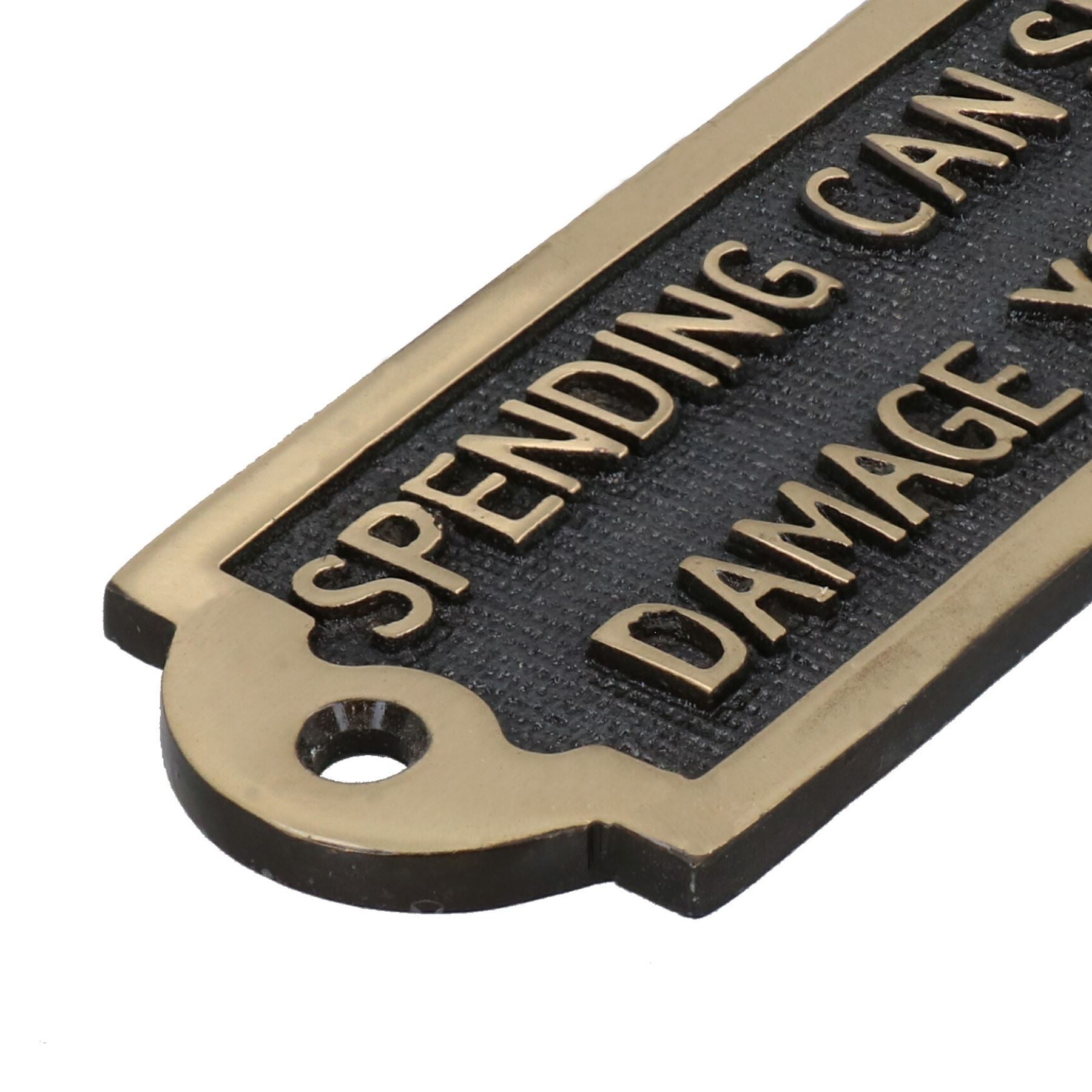 Spending Can Damage Wealth Sign Plaque Brass Finish Wall House Door Garden