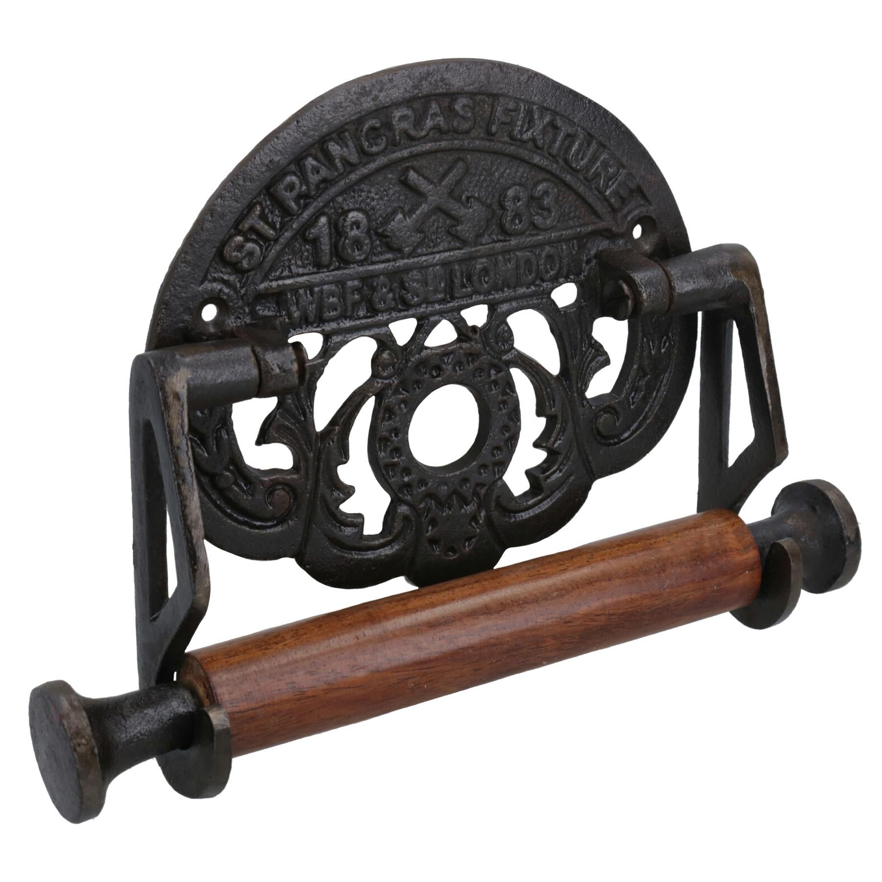 St Pancreas Toilet Roll Paper Holder Antique Style Metal Loo London Train WC