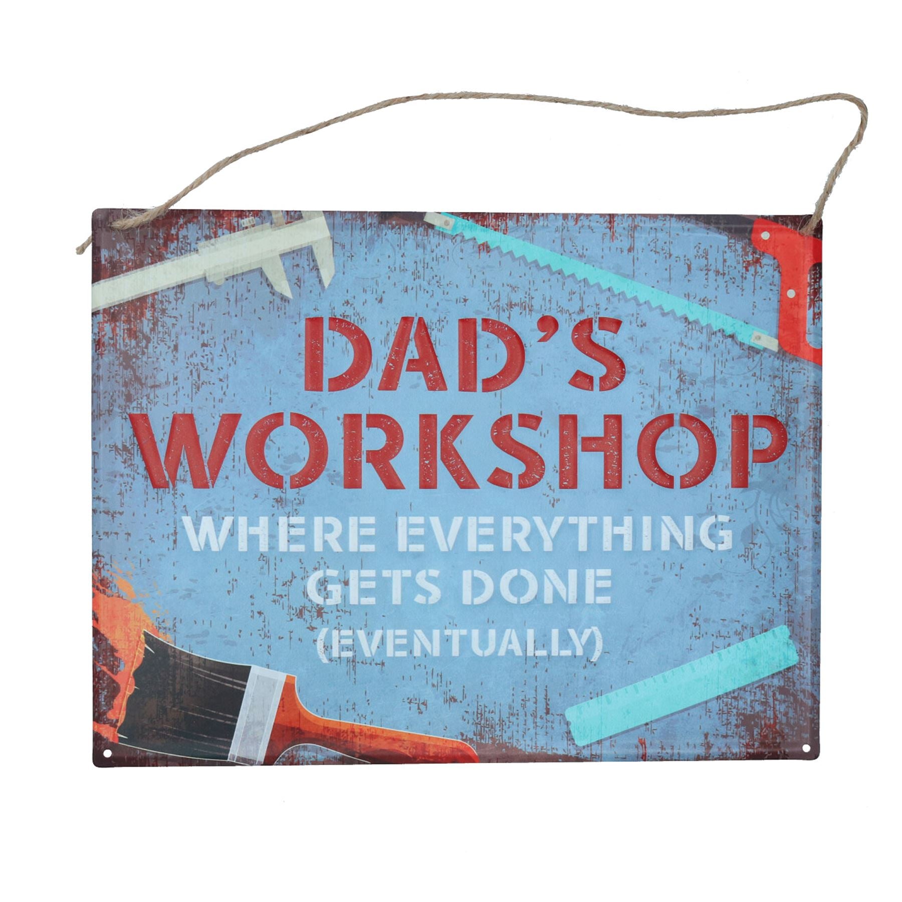 Novelty Dad's Workshop Where Everything Gets Done (Eventually) Metal Sign Gift