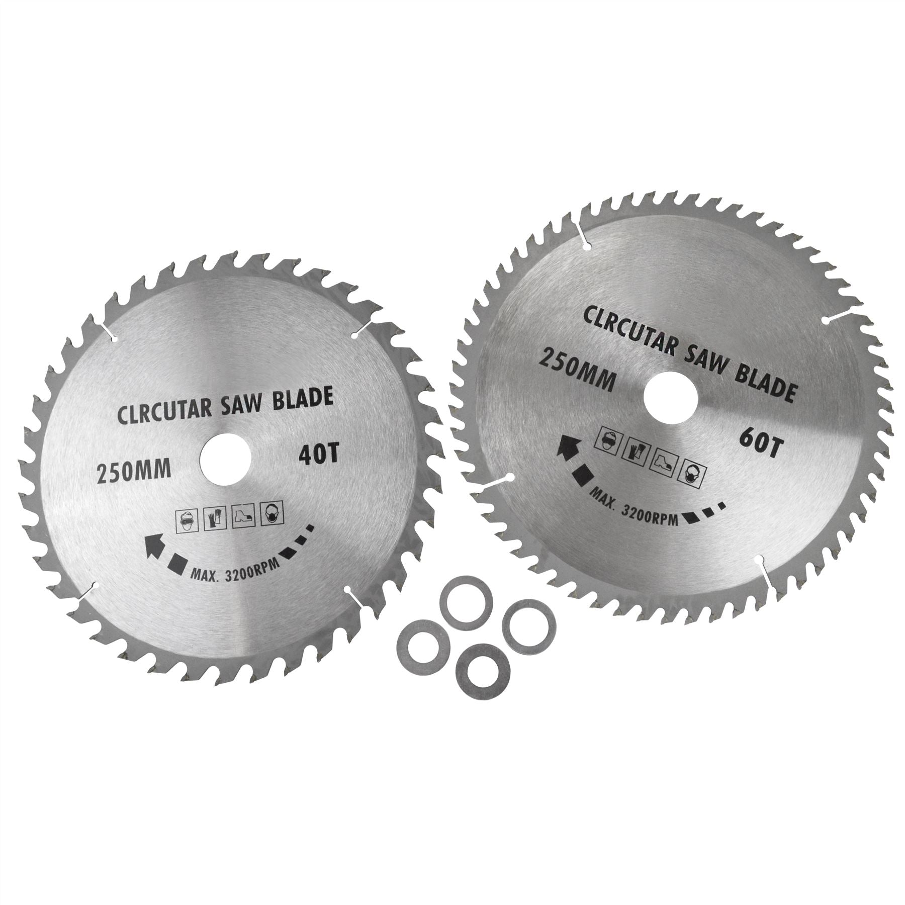 2pc 250mm TCT Circular Saw Blades 40 and 60 Teeth with Adapter Rings TE321