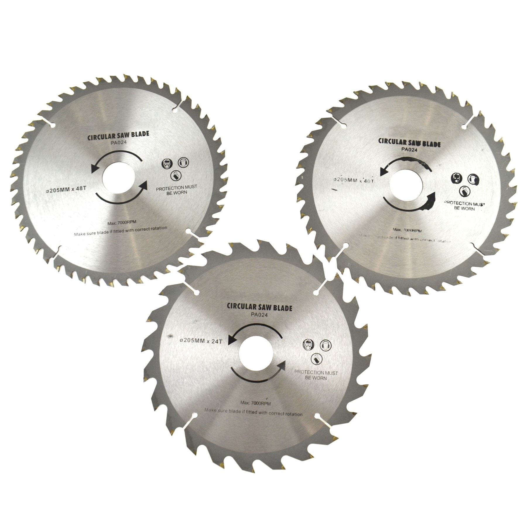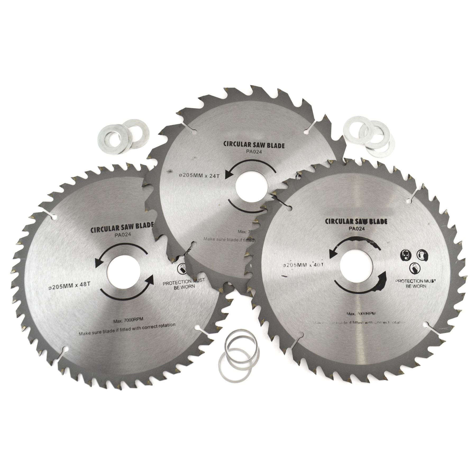 3pc 205mm TCT Circular Saw Blades 20/40/48 TPI & Adapter Rings Reducer TE861