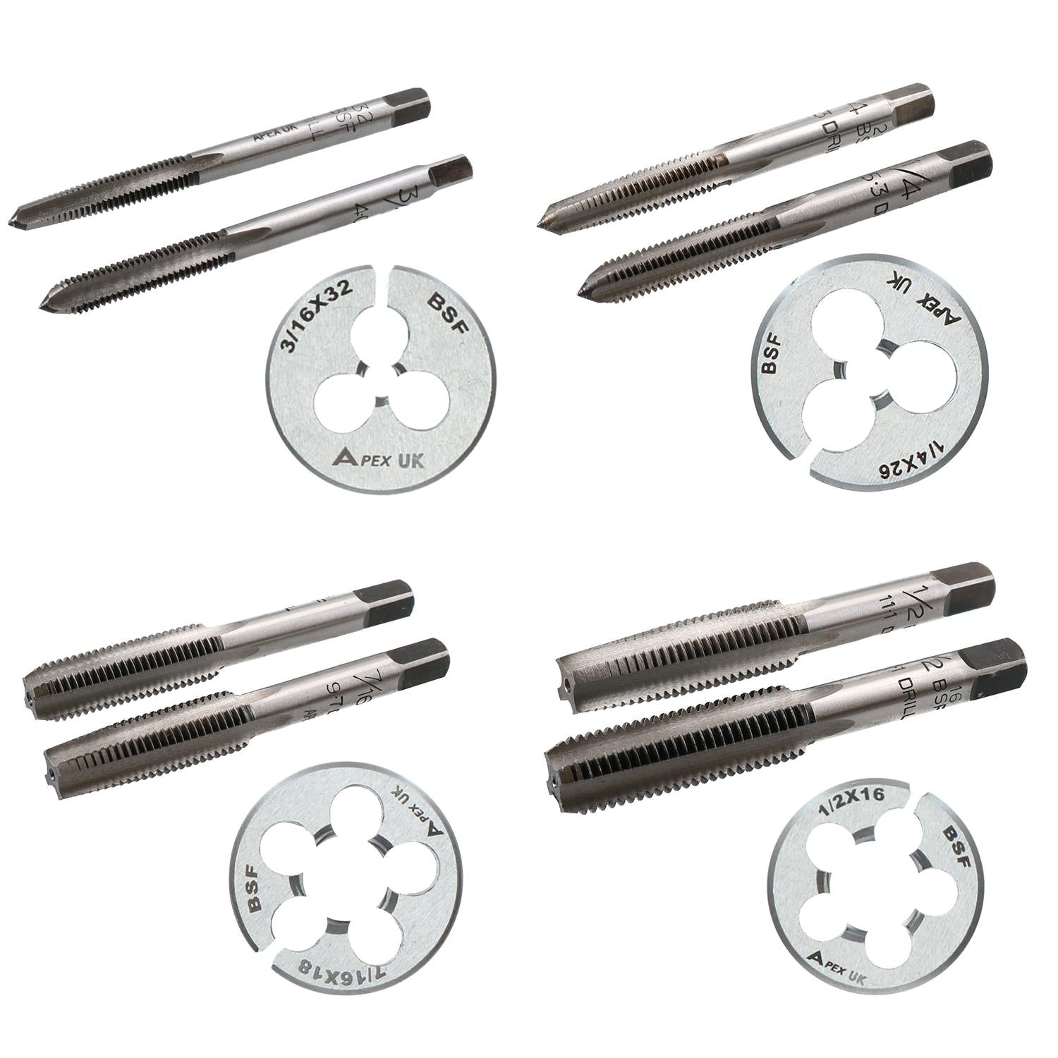 BSF Tap & Die Set Carbon Steel Taper Plug 1" Die Cutter Threading Tool Rethread